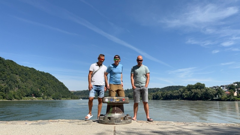 Kot vedno, čez most, čez Donavo, desno okoli ovinka, malce po pločniku in že smo na začetku tega zapisa. Na desni se Inn zliva v Donavo, pred mano Primož in Jernej pritiskata kot nora, za mano se v Donavo zliva še Ilz. Adijo mesto treh rek, mi bežimo proti Linzu pred reko iz neba.