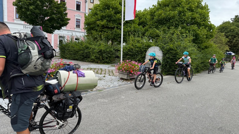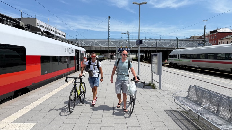Prišla sta včeraj z vlakom v Passau, kjer sem že skoraj ovenel od dolgočasja. Jaz sem v sredo zaključil turo v Flensburgu, v četrtek vklopil dolgčas (prekrasno stanje, ki ga priporočam vsem), v petek sem se točno dvanajst ur vozil z vlakom iz Flensburga v Hamburg in potem v Nüremberg in nato do kraja Passau. Prišel sem pozno ponoči. V soboto sem še vedno preganjal dolgčas in si ogledal mesto in se celo povzpel do gradu nad mestom. V nedeljo sem zehal po tri ure skupaj in končno malce pred drugo popoldan spil pivo ob družbi obeh novoprispelih sotrpinov. Jernej malce minimalno opremljen, ampak kolo, čelado, čevlje in dres ima, Primož pa je mogoče malce preveč sledil mojim navodilom, ter svojim občutkom in ima mogoče kakšen kos opreme preveč. Jah, nikoli ne veš.