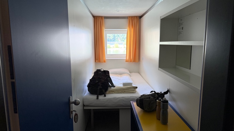 Spili smo pivo, potem pa se prijavili v en tak kolesarski hotelček, ki na prvi pogled deluje kot res dobra in poceni ideja, po drugi strani pa deluje kot malce lepša zaporniška kolonija. Imaš posteljo, na vsako stran stena, nad glavo okno, kopalnico pa na drugi strani hodnika. Pravzaprav je to kar dovolj.