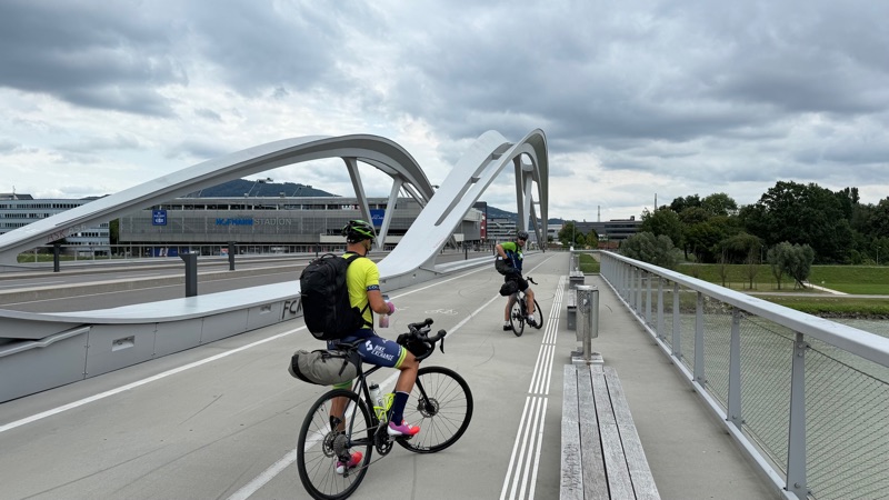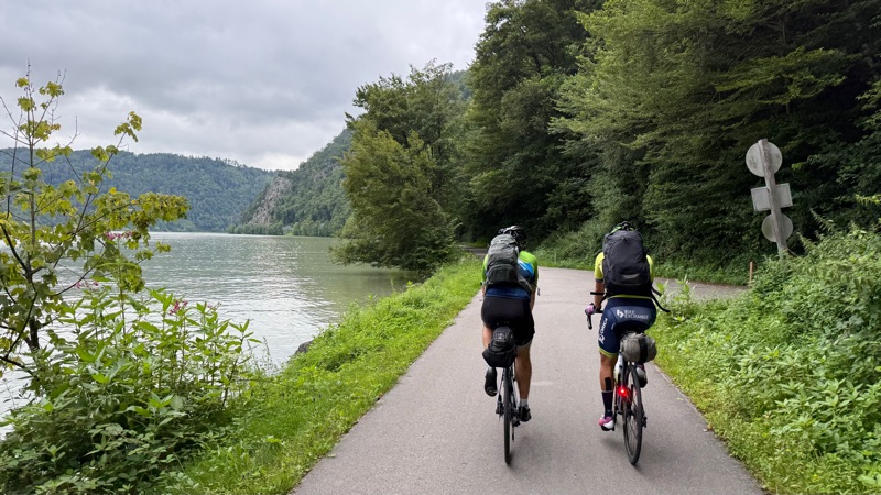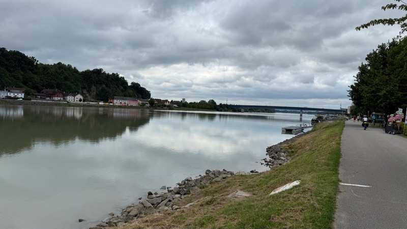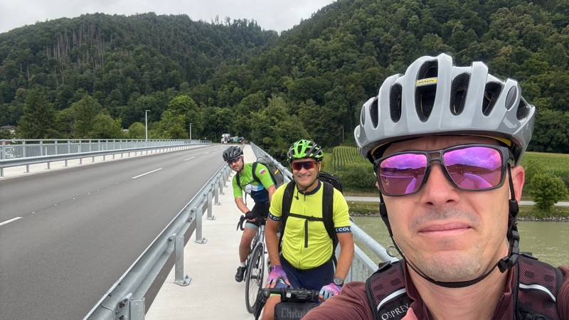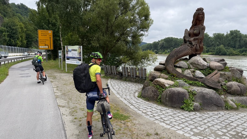 Na desni se Inn zliva v Donavo, pred menoj pa dva modela vrtita pedala kot nora, ker bežimo pred dežjem. Vozim se lepo v zavetrju in skoraj nič ne delam. In potem…. Kaj? Kako? Saj še zaključka od prejšnje ture nisem napisal, tu pa že nakladam od nove? No, prav, …