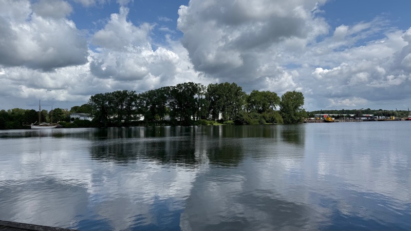 V Rendsburgu sem doživel presenečenje, Kielski kanal nisem prečkal preko mostu, ampak je pod njim speljan podhod in to s tekočimi stopnicami na obeh stran. Časovno potratno, ampak uporabno. Kanal pa povezuje Nordsee z Ostseejem, torej Severno morje z Baltskim morjem.