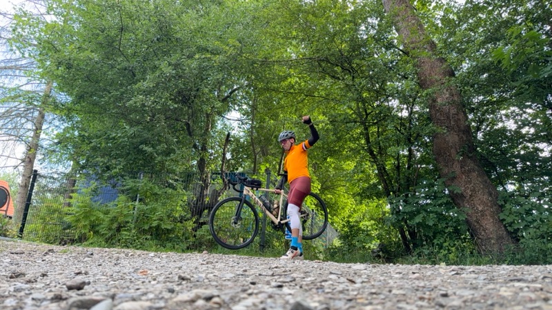 Nazaj do Nemčije pa je bil najboljši gravel ride ever. Po gozdu, v grmovju, po blatu, preko potočkov in podrtih dreves. Kolo sem celo nesel. Pot pa ves čas označena. Celo dve srni sem videl.