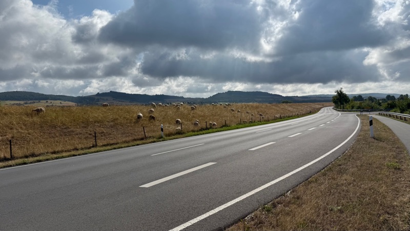Pokrajina se tu še dodatno spremeni. Grički se znižajo, klanca ni bilo, vozil pa sem se na manj kot sto metrov nad morjem. Pa ga še dva dneva ne bom videl. Einbeck je bilo prvo večje mesto na poti, pred njim pa ogroooomen pašnik ovac. Ustavil sem se in odlil, blejanje je bilo fenomenalno, kot na neki planini.