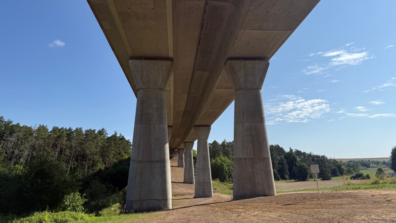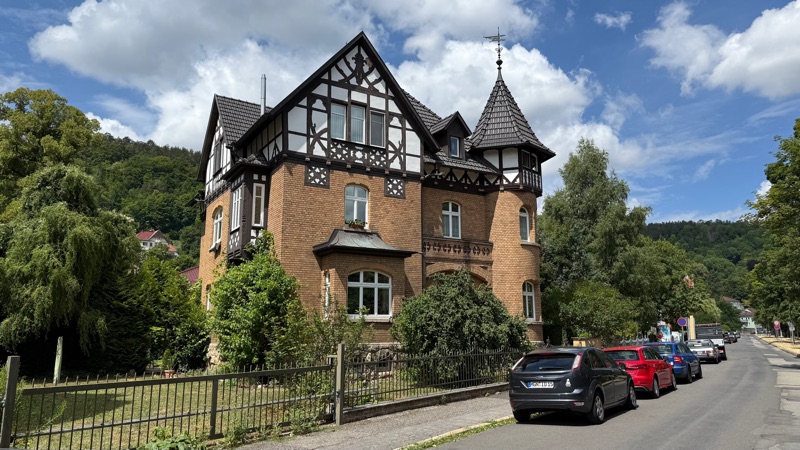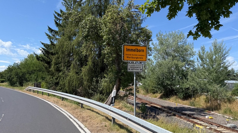 Sonca niti ne, ampak preveč klancev, ta pred Hennebergom je bil tako nesramen, da sem potem med počivanjem navzdol zavil malce drugam. Meiningen je bil sicer moj orientir, ampak se ni približal dokler nisem po številnih obvozih prišel nazaj na pravo pot. Nekaj kilometrov pa sem dodal. Wasungen je bil v redu, ob poti je bilo kar nekaj hiš gradov. Te, nekdaj vzhodnonemški kraji, so kar precej bogati s takimi manjšimi gradički, prav prijetno je videti. V kraju Schwallungen pa je nastala zmešnjava. Pod enim bizarno majhnim podvozom pod železniško progo (1.8 m višine) sem prišel v nekakšen gozd na lovsko stezico. Grem v drugo smer nakar sem se spomnil včerajšnjega dodatka in sem obrnil. Kot kaže sem narobe narisal, kolesarske ni bilo. Čeprav, če zamižim se mi zdi, da sem znakec za novo kolesarsko videl. Nič, nazaj na glavno cesto sem šel in gas. Glavna cesta pomeni, da se vozijo skoraj tako kot na autobahnu, k sreči je bil kmalu znak za kolesarsko in sem odvil in si malico na hitro organiziral v kraju Breitungen.